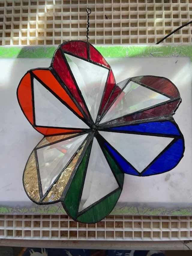 This beautiful, vibrant, joyfully colorful spinner is the perfect thing for any garden, porch, or tree! The 4-inch triangle bevels throw tiny rainbows everywhere while each petal shows off one of the colors of prism.